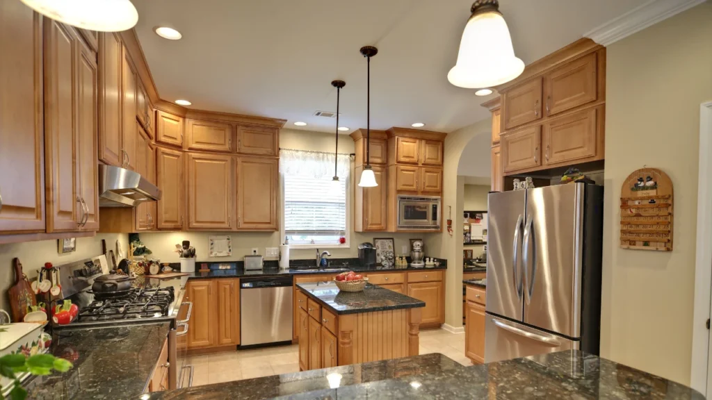 The outdated kitchen may create an impression of an old and neglected house to the visitors. New cabinets, contemporary lighting, and smooth counter top make everything in the house look like a new one immediately. This appeal will be translated directly into better offers and faster sales.